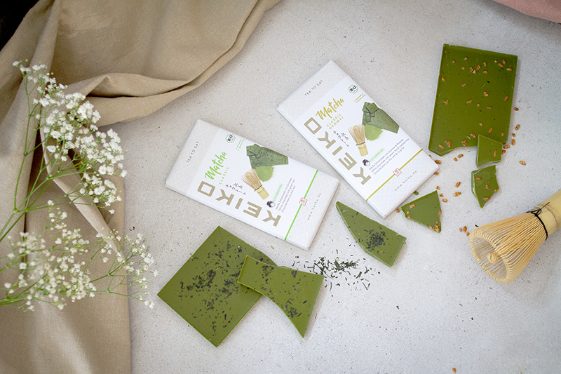 Díky zelenému čaji z ekologické farmy KEIKO v japonské Kagošimě vyrábí Edelmond Manufactory tyto mimořádné čokoládové výtvory podle konceptu „bean to bar“ od zrnek až po hotovou tabulku, vše od začátku až do konce v rodinném podniku. Stále se používají historické stroje na čokoládu a čokoláda se konšuje po dva dny pro dosažení speciální krémovosti.