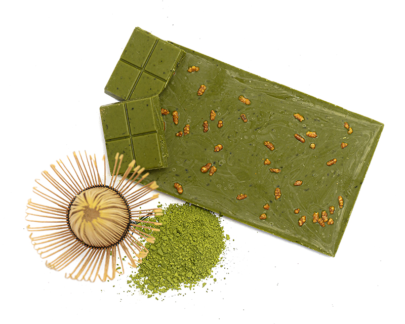 Křupavá verze klasické Matcha čokolády se sypanou Genmai praženou rýží, která obohacuje čokoládu svými praženými vůněmi a zároveň dodává hladké textuře čokolády příjemný, křupavý efekt.
