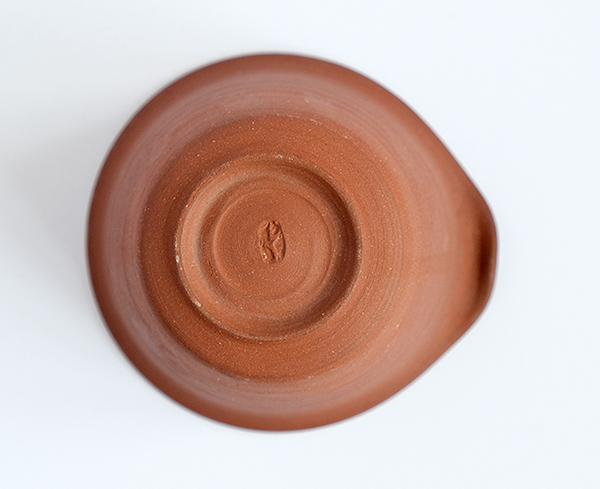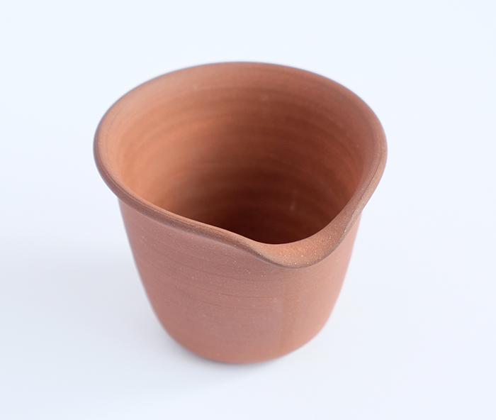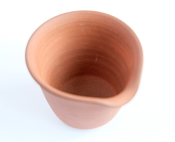 Neglazovaná červená hlína pálená v peci na dřevo při teplotě 1300°C.