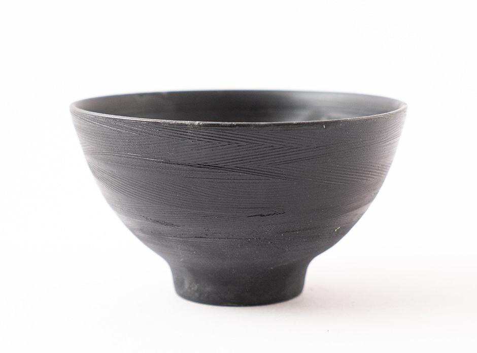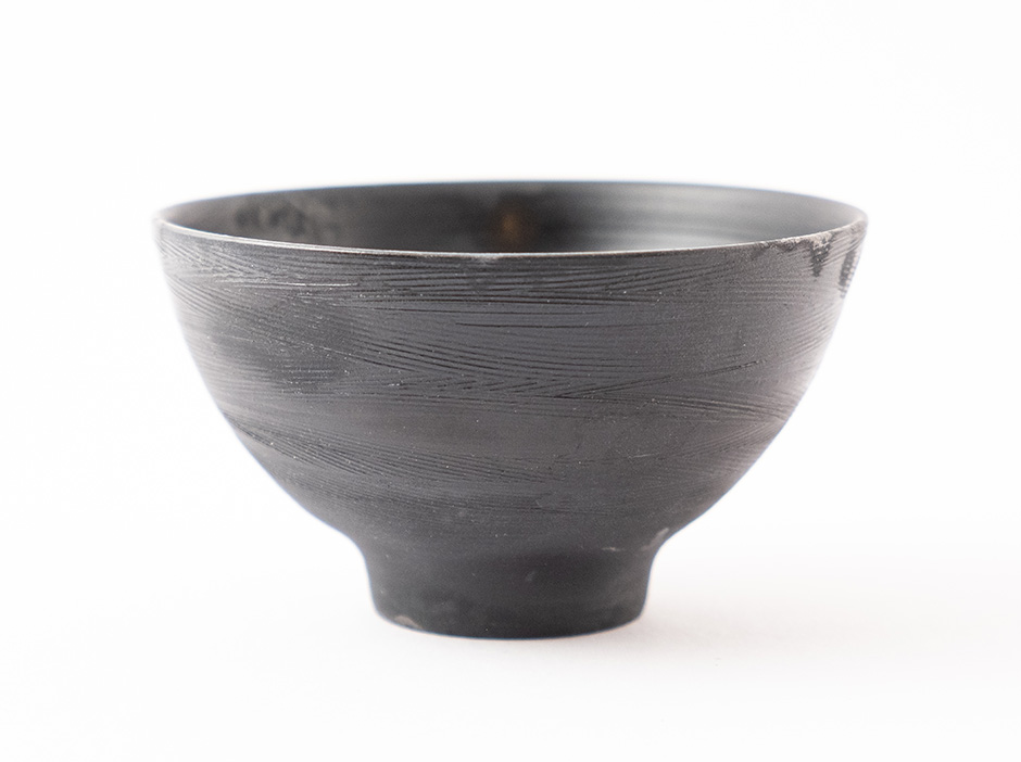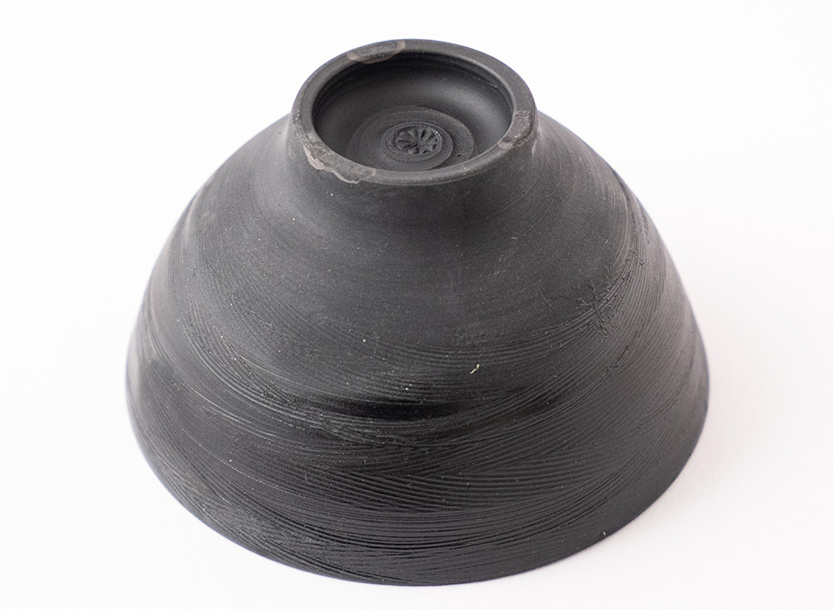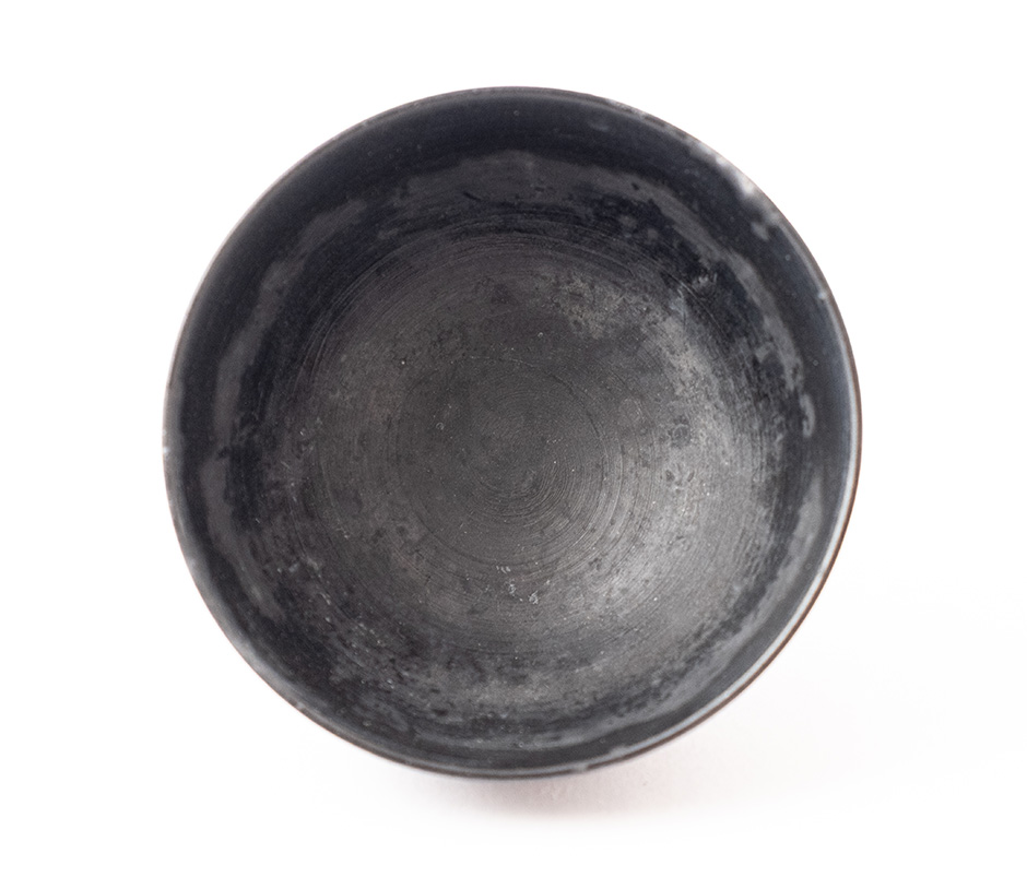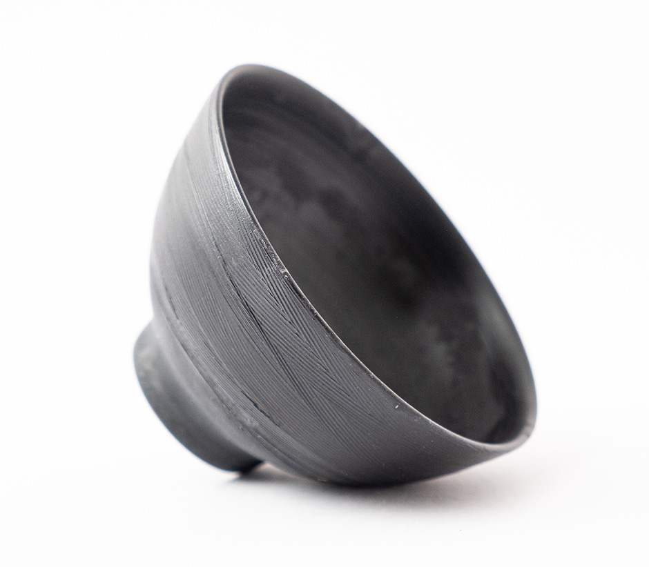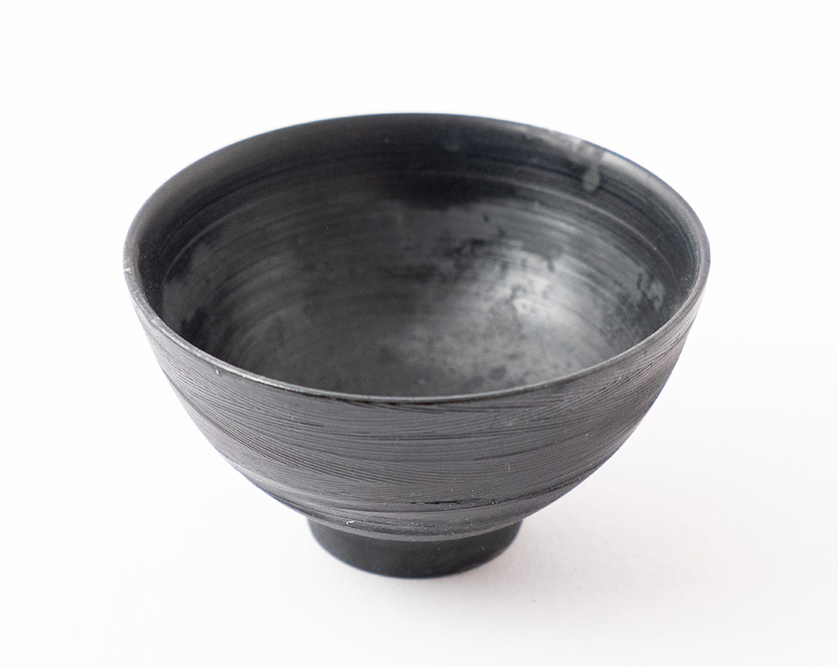 Miska z ultra světlého porcelánu Ming byla během výpalu redukována v sypaném čaji, což způsobilo černý matný efekt.
