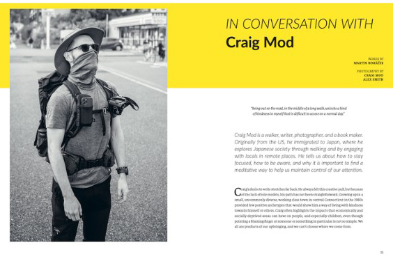 Craig Mod, spisovatel a fotograf, který jde pěšky Japonskem od největšího megacity na světě do pustých malých městeček a panenské divočiny, dělí se o své zážitky z cesty a vypráví o tom, jak mu pomohla znovu nabýt bdělost a propojit se se světem kolem sebe.
