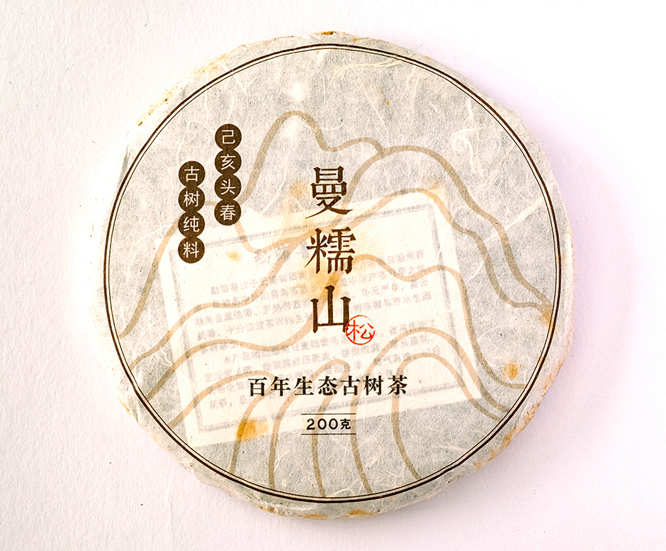 Dvěstěgramový koláč sheng puerhu z jara 2018. Čaj pochází z oblasti Man Nuo, severně od Menghai ze stromů starých 350-400 let, rostoucích v nadmořské výšce kolem 1300 metrů.