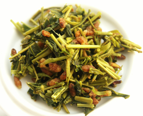 Tradiční japonská specialita složená z lístků druhé sklizně smíchaných s praženou rýží (genmai) a čerstvým matcha práškem. V šálku tmavozelený nálev, v chuti příjemně pražený charakter.