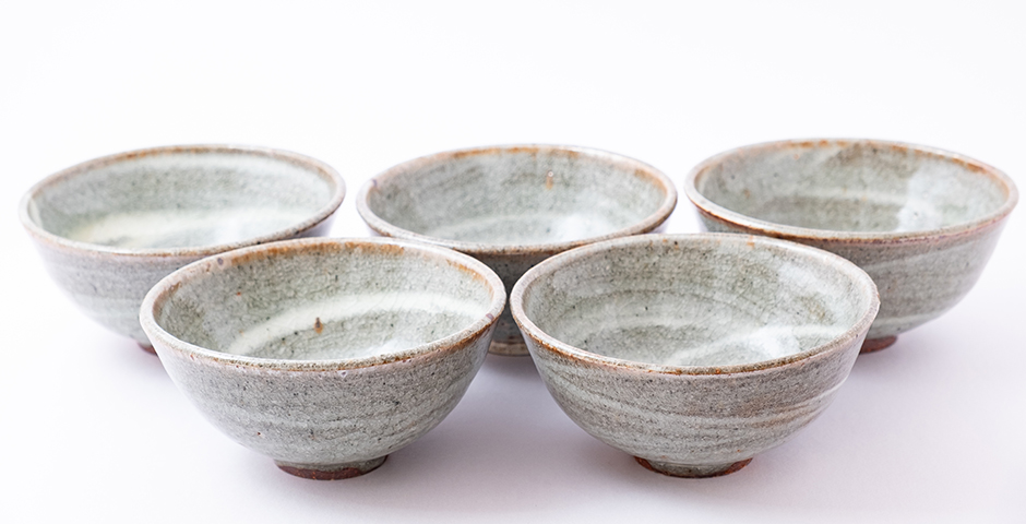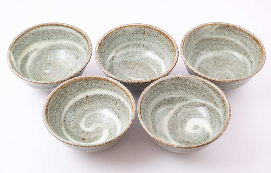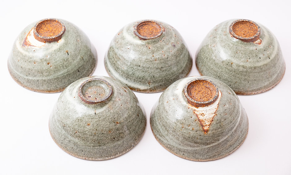 Kamenina pálená v peci na dřevo při teplotě okolo 1300°C. Glazura buncheong - tmavá hlína se potře bílým kaolínem a ten se přeglazuje průhlednou glazurou..
