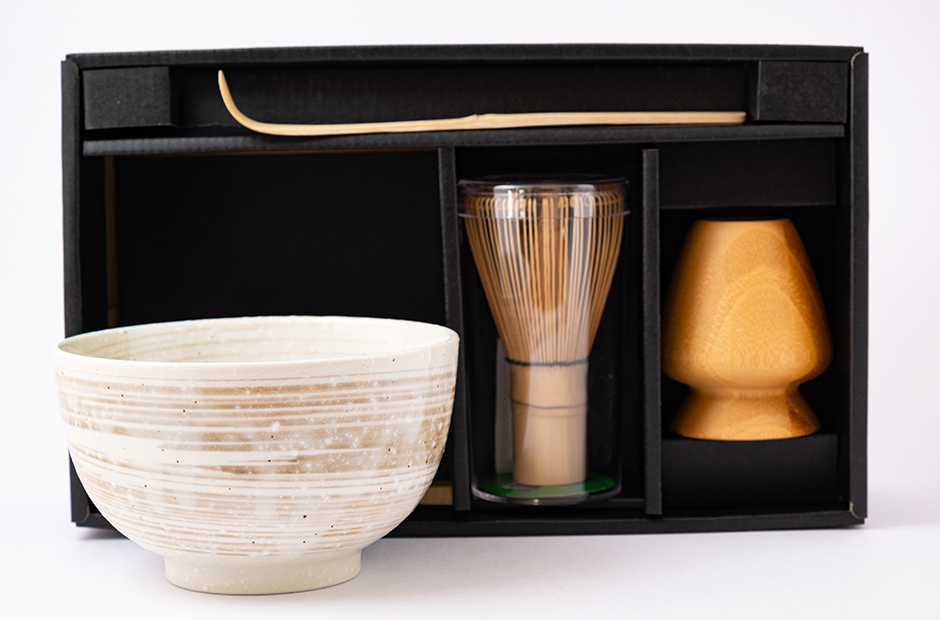 K sadě si můžete dokoupit čaj matcha v malé kovové dóze.