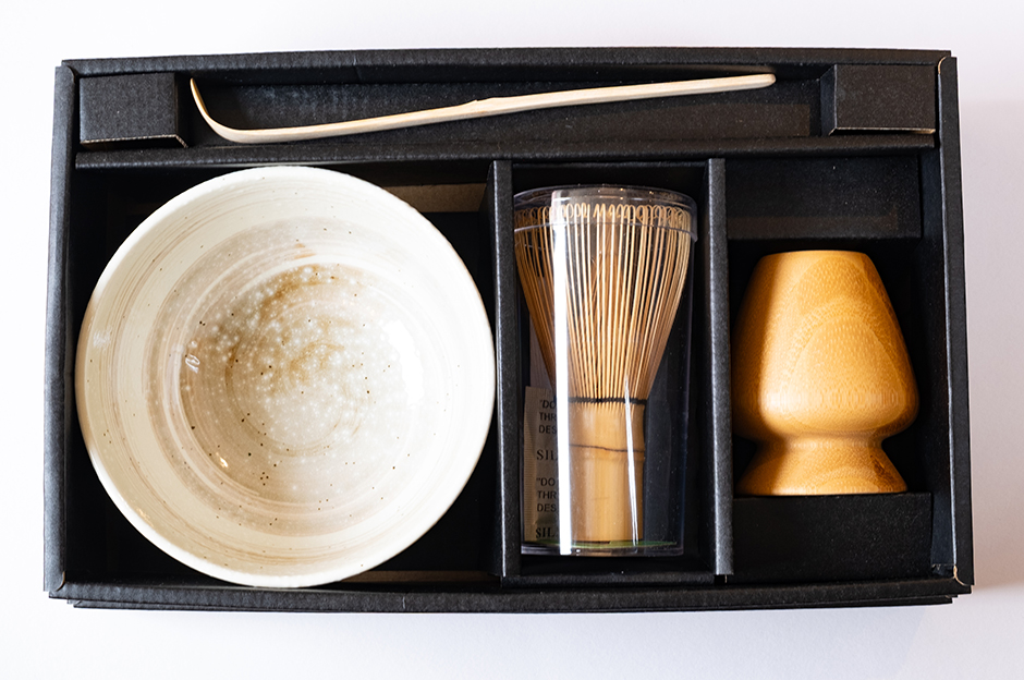 K sadě si můžete dokoupit čaj matcha v malé kovové dóze.